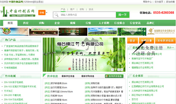 第一步:登录中国竹网的首页,点击免费注册,进入注册会员的界面;