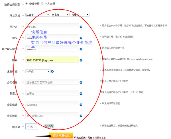 第二步:选择企业会员类型,填写相关的内容,然后点击提交;