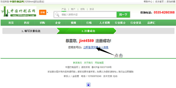 第三步:注册成功之后,会有提示页面,点击:立即登录完善个人信息;